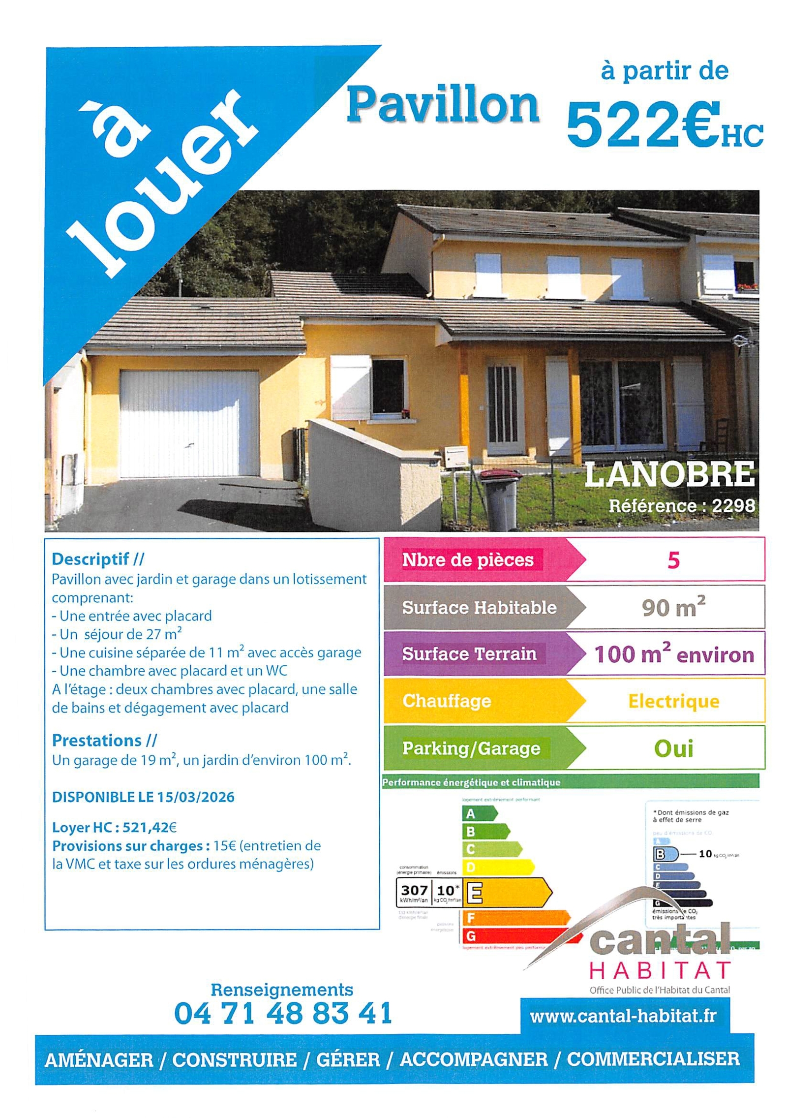 Pavillon à louer au 33 Rue des Genêts à Granges. Pour tous renseignements merci de bien vouloir contacter le 04 71 48 20 16